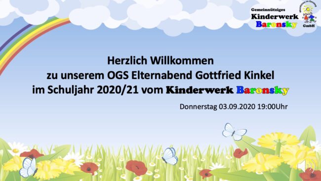 Liebe Eltern, aufgrund von Corona haben wir den Elternabend unserer OGS Gottfried Kinkel digital als Zoom-Konferenz duchgeführt. Anbei finden Sie die Präsentation, welche wir im Vorfeld vertont und auf dem Elternabend vorgestellt haben. Darin haben wir alle wichtigen Infos rund um unser Konzept für den Offenen Ganztag und dessen Umsetzung – auch zu Zeiten von…
